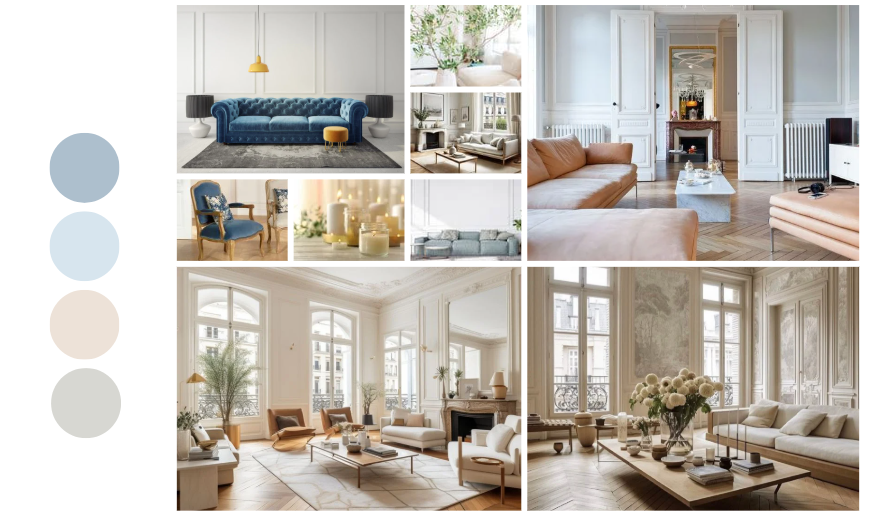 Callirenov Décoration d'intérieur en Essonne & Île de France Les moodboards planches d'ambiance, d'inspiration, matériaux... découvrir les prestations Planches d'inspiration